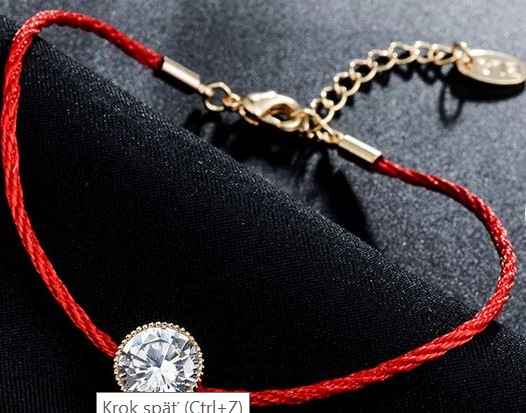 Náramok vyhotovený z červeného lanka so zirkónom, ukončený retiazkou na úpravu dĺžky ( cca 20 cm ) - Red Cord